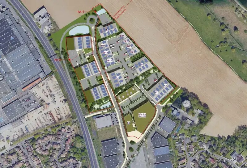 Le lot F1 bénéficie d’un accès dédié offrant un fonctionnement totalement indépendant pour une activité industrielle, artisanale ou mixte. Les espaces au rez-de-chaussée permettent de recevoir une activité nécessitant une grande hauteur et une zone de manœuvre adaptée aux poids lourds grâce à la présence de quais et d’une porte sectionnelle. L’étage supérieur offre un potentiel d’aménagement flexible pouvant accueillir des bureaux ou des locaux techniques selon les besoins de l’utilisateur. L’ensemble est situé au sein d’un environnement économique récent, avec un accès rapide aux grands axes et des possibilités de stationnement directement à proximité du bâtiment.