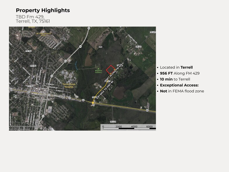 Located in Terrell, TX, this 16 acres commercial acreage presents a rare opportunity for development in a high-visibility. Currently undeveloped, the property offers a blank slate for a wide range of commercial or mixed-use possibilities. Property sits within the ETJ of Terrell, offering development flexibility outside city limits and fewer zoning restrictions. Also Located in a Federally Designated Opportunity Zone: Deferral of capital gains taxes Reduction of capital gains for long-term holds Potential elimination of taxes on new gains after 10 years Located in Terrell 956 FT Along FM 429 10 min to Terrell Exceptional Access: Not in FEMA flood zone