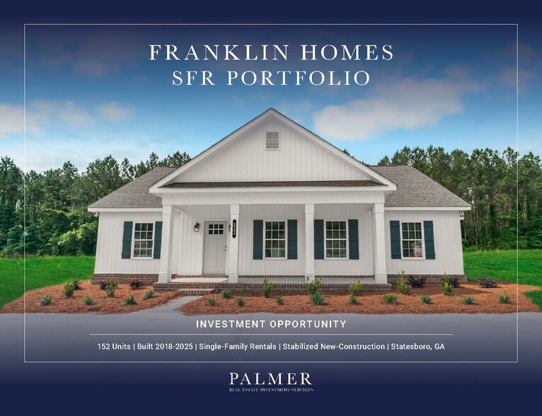 FRANKLIN HOMES SFR PORTFOLIO is an exceptional collection of 152-Units of newly constructed, build-to-rent single-family detached homes and one-story duplexes located in Statesboro, GA.