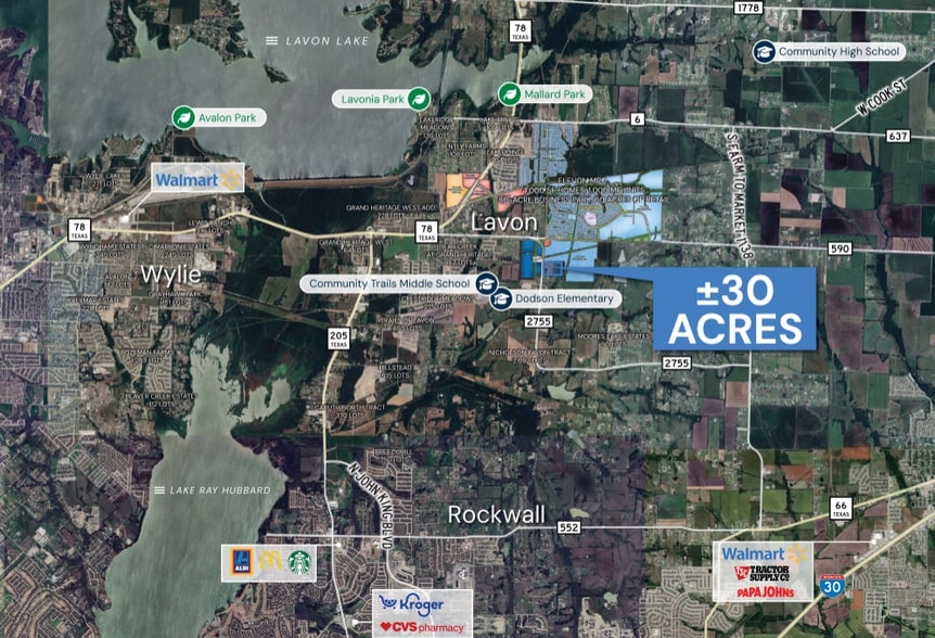 SEQ of FM 2775 & CR 541 in Lavon ETJ, TX 75166 SIZE: ±30 Acres LAT. , LONG.: 33.01563306104027, -96.41580922254343 ZONING: Extra-Territorial Jurisdiction PARCEL: R-6002-001-0500-1; R-6002-001-0790-1 UTILITIES: Water: 3” waterline to site and an 8” waterline approximately 1,000 feet away Sewer: Purchaser will need to work with City of Lavon and Bear Creek Special Utility District FLOODPLAIN: Creek running through the east side of property along with about 2.5 acres of flood plain. TAX: 1.49% SCHOOLS: Community Independent School Zone; Dodson Elementary; Community Trails Middle School; Community High School LEGAL: ABS A0002 DRURY ANGLIN SURVEY, SHEET 1, TRACT 50, 20.0 ACRES, ABS A0002 DRURY ANGLIN SURVEY, SHEET 1, TRACT 79, 10.0 ACRES PRICE: Call for Pricing