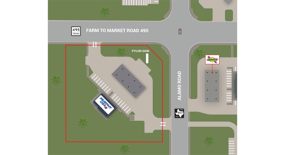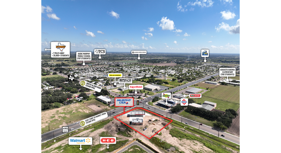- Signalized Hard Corner Location at FM 495 & Alamo Road, Just North of IH-2/US-83 (80,000+VPD)