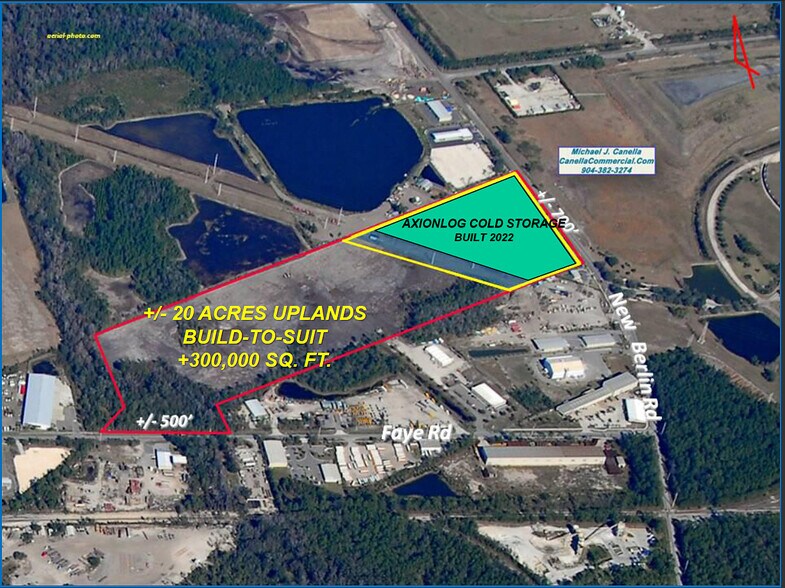 BTS - SIZE/FRONTAGE: +/- 20 AC UPLANDS; +/- 500 ft. frontage on Faye Rd. ZONING: IH (Industrial Heavy) CONDITION/USE: Excellent condition, ready for development. Distribution, office/warehouse options. Will consider lease-purchase. INFRASTRUCTURE AND IMPROVEMENTS: +300,000 sf of total improvements can be constructed on this site. All utilities - JEA, water, and sewer in place. FAST TRACK FUNDING! FLEXIBLE DESIGN CONFIGURATION(S) AVAILABILITY: Building permits can be obtained in 6-8 months. Occupancy potentially within 18 months of the signed agreement.