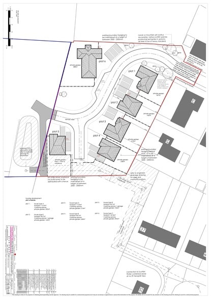 The proposed Phase 1 development comprises: House Type A (Plots 1 & 3): 2 x 3-Bed Detached Bungalows of 110 sq m House Type B (Plots 2, 4 & 5): 3 x 4-Bed Detached Villas with Garage of 170 sq m House Type C (Plot 6): 1 x 4-Bed Detached Bungalows.