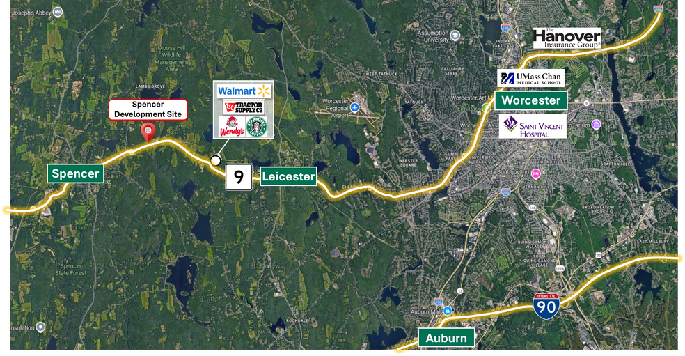 15 miles west of the city of Worcester, MA. The property benefits from strong visibility along a primary commercial corridor with over 13,588 vehicles per day (massDOT) and direct access to Worcester and the I-90/Mass Pike, making it highly accessible to the surrounding trade area.