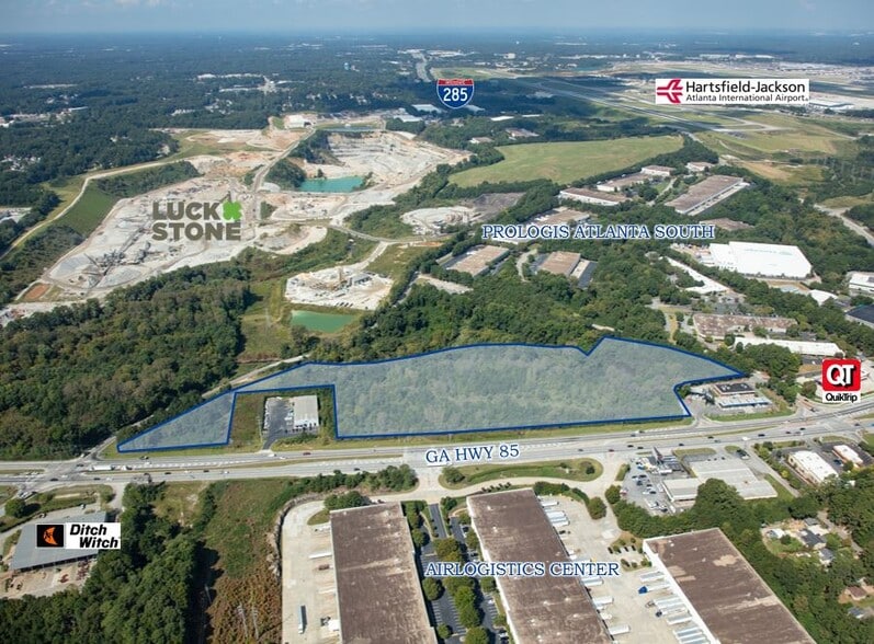 INDUSTRIAL LAND AVAILABLE FOR LEASE Location: GA Hwy 85 between Atlanta South Pkwy & Lees Mill Rd - 1 Mile to I-75 @ Exit 237 - 2.5 Miles to I-285 @ Exit 60 - 3 Miles to Hartsfield-Jackson Int’l Airport - 6.5 Miles to I-85 - 10 Miles to downtown Atlanta Parcel IDs: 13075B G001 - 2.34 Acres 13075B G003 - 6.73 Acres 13075D A001 - 9.89 Acres 13086A B001 - 2.13 Acres Total Acreage: ±21.09 Municipality: Clayton County Zoning: HI – Heavy Industrial Access: Median Break with signalized intersection at midpoint on GA Hwy 85 Overlay: Cherry Hills District (excluding Parcel 13086A B001) GA Hwy 85 Frontage: ±1,460 FT Other: Located on MARTA Transit Route (191) Incentives: Enterprise Zone