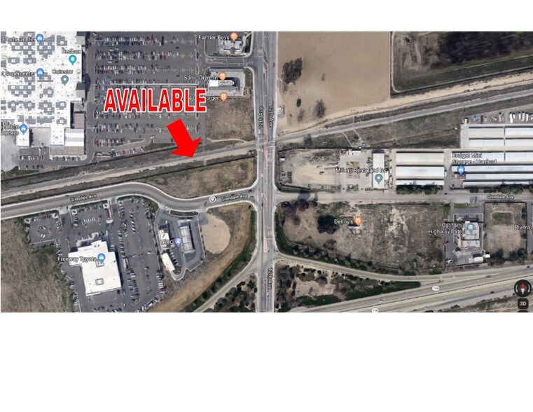 Prime ±45,302 SF (±1.04 Acre) parcel just off HWY 198 & 12th Avenue at the entrance to Kings County's major Power Centers. Strategically located around 3 auto dealers, approved hotel, AMPM-Arco, various national retailers of fast food, gas stations, Target, Hanford Mall, and a Walmart Super Store. Ideal for a quick service retail drive-thru, car wash, or various other uses. Pad is available for either ground lease or sale. Shovel-ready site with off site improvements (utilities, curb-gutter, fire hydrant, and paving) completed. Flexible "Zero Setback" on the north SP Railroad and a 15' setback from the frontage of Glendale Ave. Located off CA-198 on the major East/West transportation corridors with high traffic counts of 32,000 to 35,000 cars per day with a flexible C-S Service Commercial zoning. Located within Hanfords major Retail area off of 12th Avenue and CA-198 surrounded by many national retailers including In N out Burger, Sonic Drive Thru, Farmer Boys, Denny's, El Pollo Loco, McDonald's, Chili's Grill & Bar, O'Reilly Auto Parts T-Mobile, and many more!