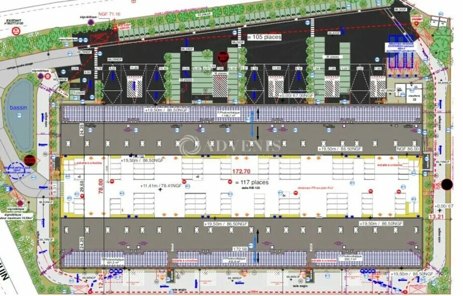ADVENIS CONSEIL offers several warehouse units with accompanying offices for lease, starting from 2,941m², within a new business park in Gonesse. This state-of-the-art business park is located on a secure, enclosed site with heavy-duty roads for maneuvering and circulation, allowing access for large vehicles. Each unit will be equipped with two dock doors with levelers and a ground-level access, featuring a clear height of 10 meters and a floor load capacity of 5T/m² with a quartz-surfaced concrete slab. The accompanying offices will be equipped with reversible air conditioning. This next-generation program will offer numerous amenities and will be certified BREEAM Very Good and Biodivercity. Accessible via the D970G, it is located 5 minutes by car from the A1 and A104, and 13km from Roissy Charles de Gaulle Airport. The Grand Paris Express metro line 17 "Gonesse" will also be nearby (end of 2028). Take advantage of a strategic location to set up your business and employees in pleasant conditions and develop your activity. Program delivery is scheduled for the end of 2026. ICPE 1510 (registration) & ICPE 2910, 2925 (declaration). Feel free to contact us for more information and a complete presentation of this future program. - Lease type: Commercial - Duration: 3/6/9 years - Tax: VAT - Security deposit: 3 months excl. VAT/excl. charges