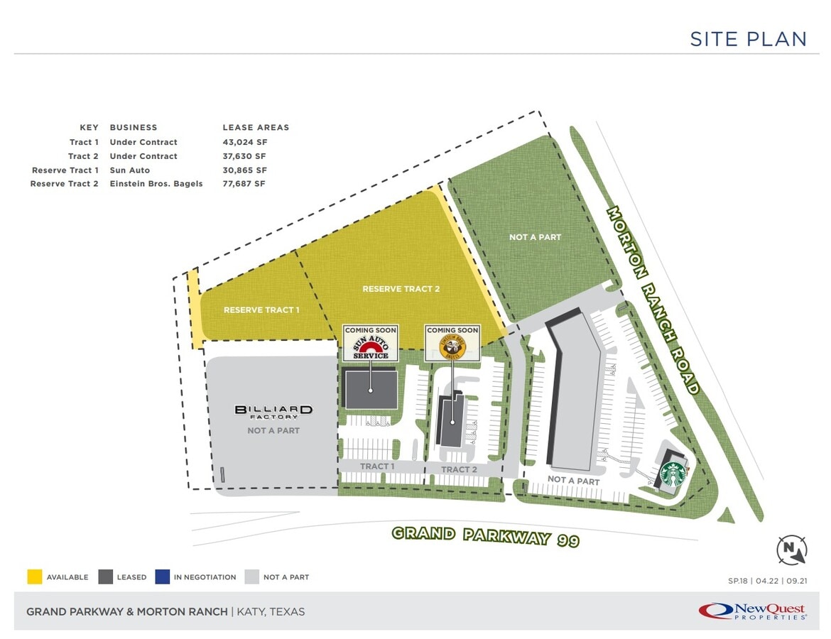 Grand Parkway and Morton Ranch is a 0.85 to 4.3 acre pad sites for Sale or Lease at Major Thoroughfare Corner, with aggressive residential growth nearby. This space is heavily accessible to commuters bringing a strong daytime population and traffic from Grand Morton Town Center, a 91+ acre shopping center, a 1M-SF industrial complex, and class A office complexes.