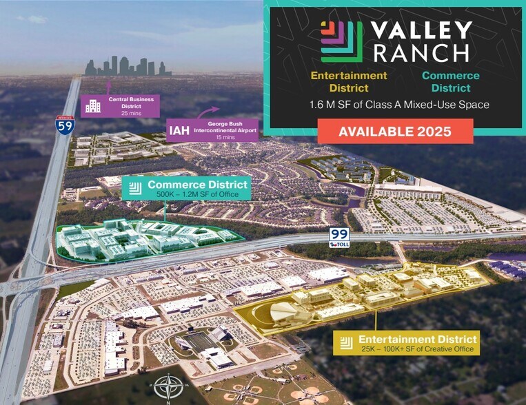 The Commerce District at Valley Ranch is a beacon for business innovation, blending upscale office spaces and retail opportunities designed with connectivity and growth in mind. It is a prime location for companies seeking a vibrant community and a modern, collaborative work environment.