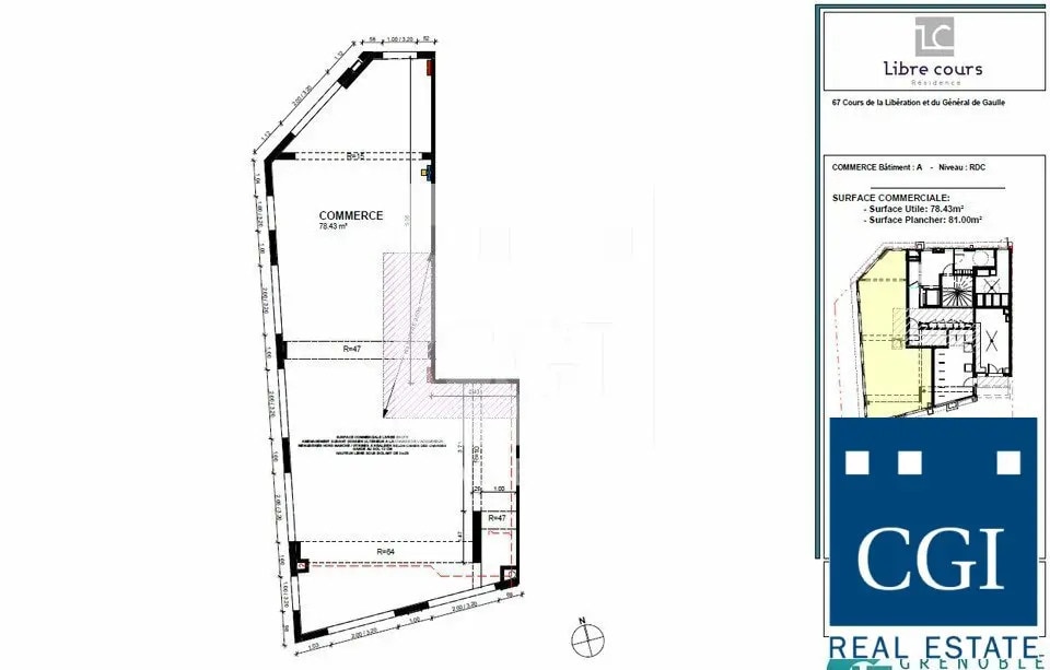 Au coeur de Grenoble, sur les grands boulevards, nous vous proposons à la location ce local commercial de 81m². Local d'angle avec une visibilité exceptionnelle sur axe majeur de Grenoble. Nombreuses vitrines. Les bâtiments sont situés dans un quartier en pleine expansion, résidentiel, dynamique et verdoyant. Le quartier est bien desservi par les transports en communs, plusieurs lignes de bus et les lignes de tram C et E passent aux alentours. Le site est facilement accessible en voiture grâce à la proximité avec l'autoroute A480 et la rocade sud. Local neuf, livré brut de béton, fluides en attente. Participation du bailleur à discuter pour les vitrines. CGI REAL ESTATE GRENOBLE - Immobilier d'entreprise - Type de bail : Commercial - Durée : 3/6/9 ans - Préavis : 6 mois - Fiscalité : TVA - Indice : ILC / ILAT - Indexation : Annuelle, date prise effet - Dépôt de garantie : 3 mois HT/HC - Loyers et charges : Trimestriels et d'avance - Accès PMR - Brut de béton - Fluides en attente - Rez-de-chaussée