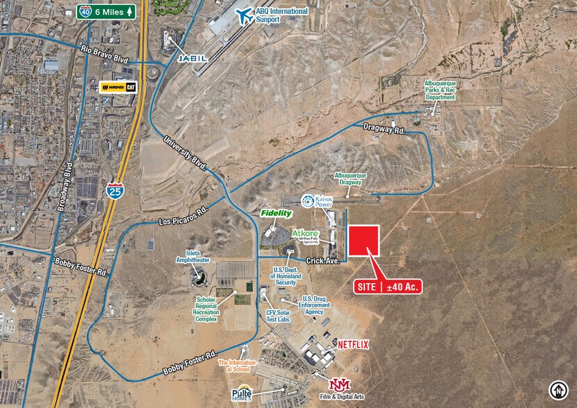 - Nearby utilities and Paved access with curb - Easy access to I-25 - See the mesa del Sol mater plan by clicking HERE - Ideal for manufacturing, data center, office, and more - Located in an opportunity and HUB zone - IDO Zoning: PC