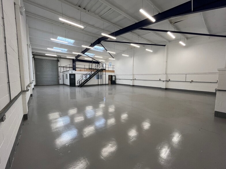Available space comprises 3,221 sq ft of ground floor warehouse with 552 sq ft of mezzanine space.