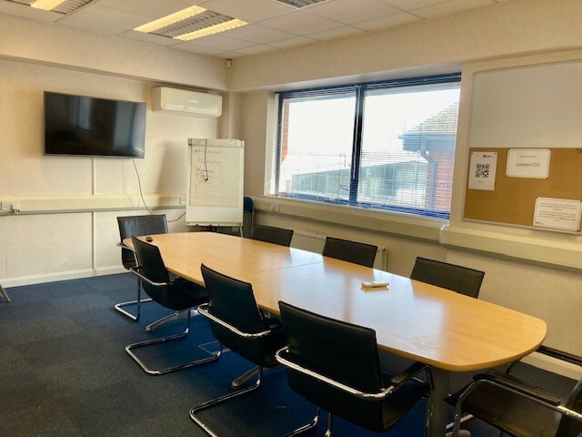 The property comprises a first-floor office suite accessed via a shared entrance, with shared W.C. facilities. The accommodation is well laid out and provides an open-plan office area, two meeting rooms, a store room and a kitchenette. The offices have recently been refurbished to a good standard and benefit from new carpeting and air conditioning throughout. Further advantages include allocated on-site car parking spaces and access to a communal bike store, making the suite suitable for a range of office occupiers.