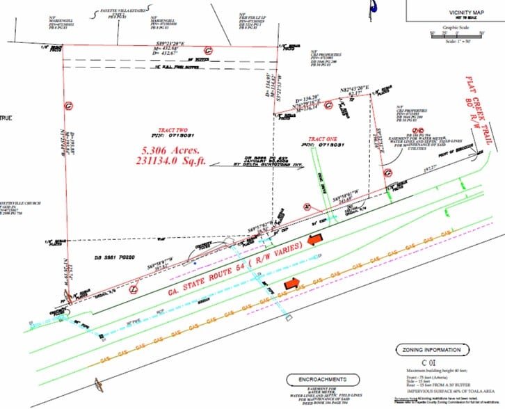 This ±5.31-acre commercial land parcel is located along Highway 54 in Fayetteville, GA, offering approximately 652 feet of primary frontage on a major thoroughfare. The site features rolling topography and is currently raw land, providing a flexible canvas for development. Zoned O&I (Office and Institutional), the property supports a wide range of potential uses, including commercial, industrial, retail, and office development. Existing infrastructure includes curb and gutter, paved streets, electricity, gas, water, cable, telephone, and irrigation, ensuring strong utility access for future projects. The property benefits from excellent visibility and accessibility along Highway 54, a high-traffic corridor with strong daily vehicle counts. This tract is strategically positioned near Piedmont Fayette Hospital and Trilith Studios, placing it within a growing commercial and healthcare hub. With its zoning, utilities, and location advantages, the site is well-suited for developers and investors seeking a high-exposure property in Fayette County.