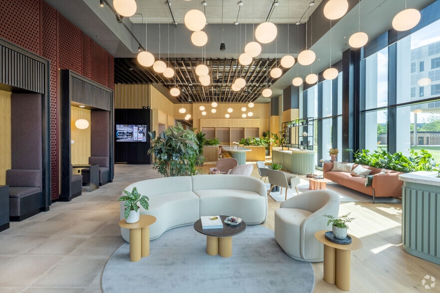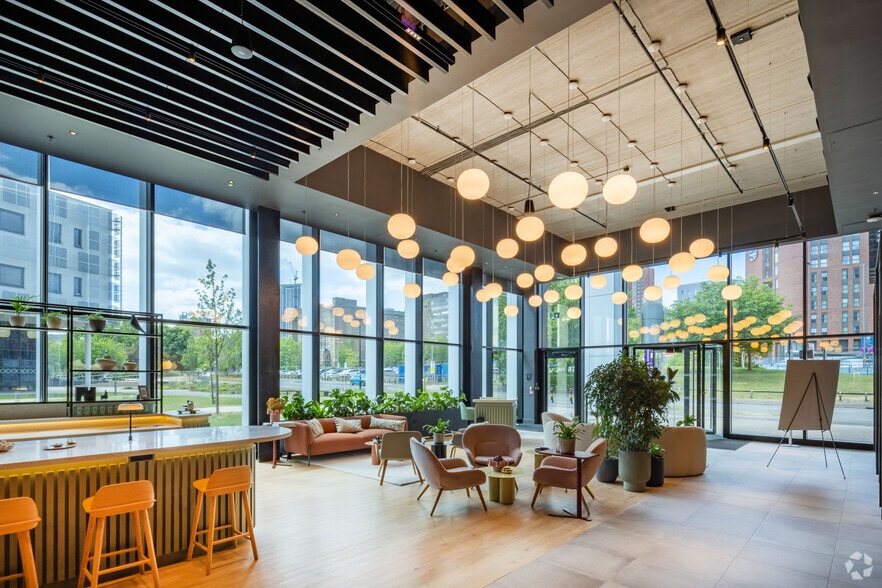 - Extensive amenity offer including gym, café, roof garden, collaboration spaces and landscaped outdoor areas
