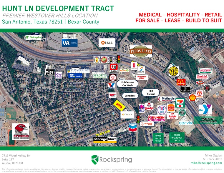 UTILITIES: Water – 12” SAWS line available Sewer – 15” SAWS line available ACCESS: +/- 1,250 ft frontage on Hunt Ln with direct access to Hunt Ln, TX 151, and Potranco Rd Joint access easement with neighboring development