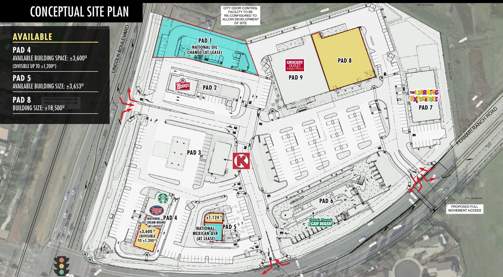JUST BROKE GROUND! Est. timing for delivery Fall 2026! Planned community center anchored by Grocery Outlet in the heart of the Lincoln trade area. Located at the crossroads of Ferrari Ranch Rd and Lincoln Blvd, a major north/south arterial in the trade area.