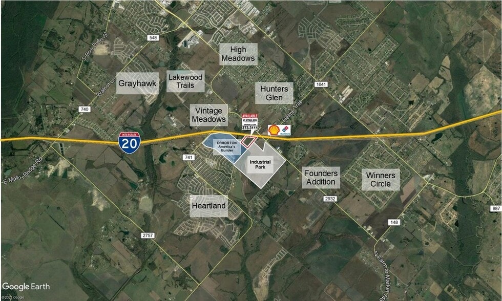Property is located in the city limits of Mesquite, TX. on the SW corner of I-20 & FM 2932. Water service coming soon. $6.00/sf