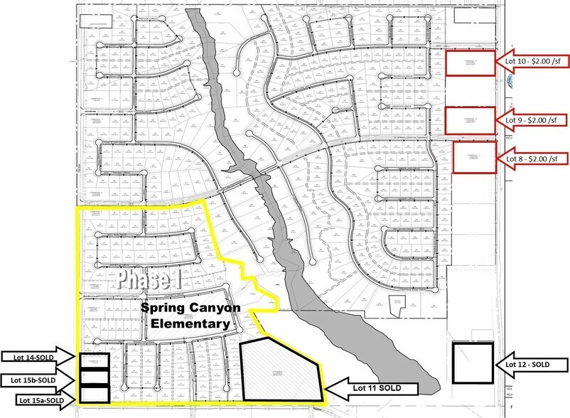 Prime commercial lots situated in the Spring Canyon Subdivision. These plots are conveniently located just north of Canyon, offering easy accessibility from multiple major roads including Soncy, I-27 Frontage Road, and Country Club Road. Perfect for businesses seeking a strategic and prominent location within a growing community.
