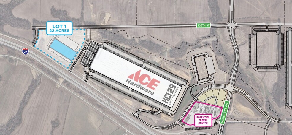 Direct access to I-29 and I-435 via Full interchange at I-29 and Mexico City Avenue