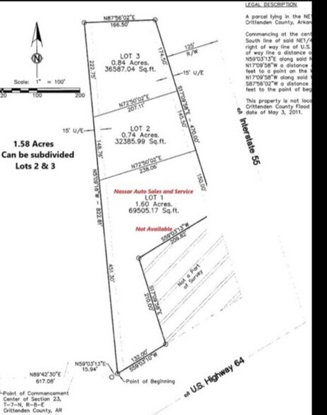 An excellent location with easy access and visibility to I-55 at US Highway 64 in Marion, Arkansas. Property totaling 1.58 acres will be ideal for development with the neighboring cities of West Memphis, Arkansas and Memphis, Tennessee, just a short drive across the bridge. Subdividing options available. Zoned Commercial. Asking Price: $6.00 per SF