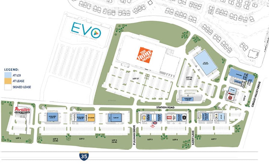 - Pads available facing IH-35 have excellent visibility