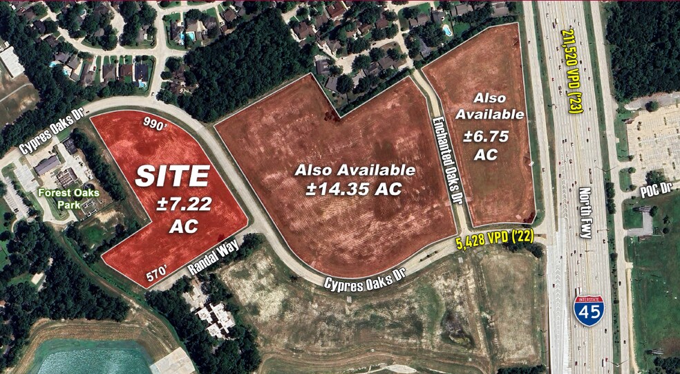 The property is located north of the Houston Central Business District. Travel IH-45 north to Cypresswood. Turn west on Cypresswood Drive to the IH-45 south service road. Continue on the service road to Cypress Oaks Drive.