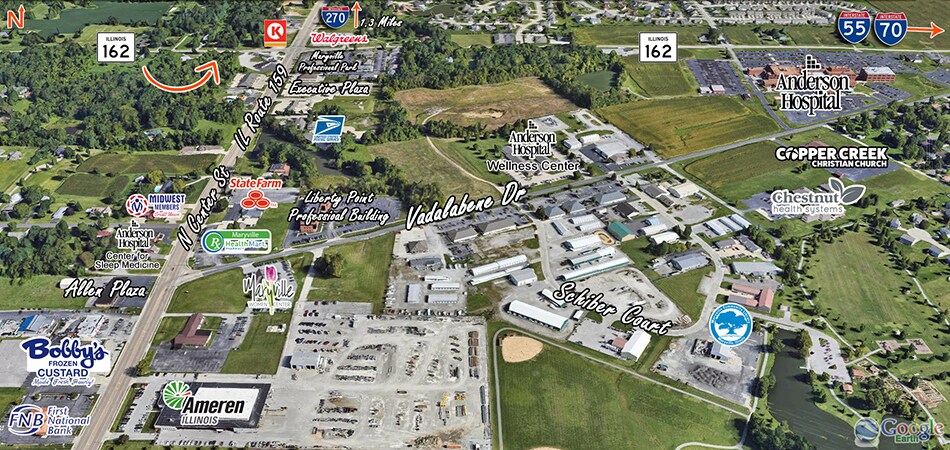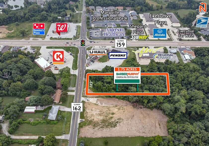 1.75 acres on IL Route 162, one block west of IL Route 159. Site is located in a TIF District. Adjoining 2.24 Acre lot to the west of the site is also available. High Visibility location. Retail and office also in area. Less than half mile to Anderson hospital and Interstate. All Utilities available.