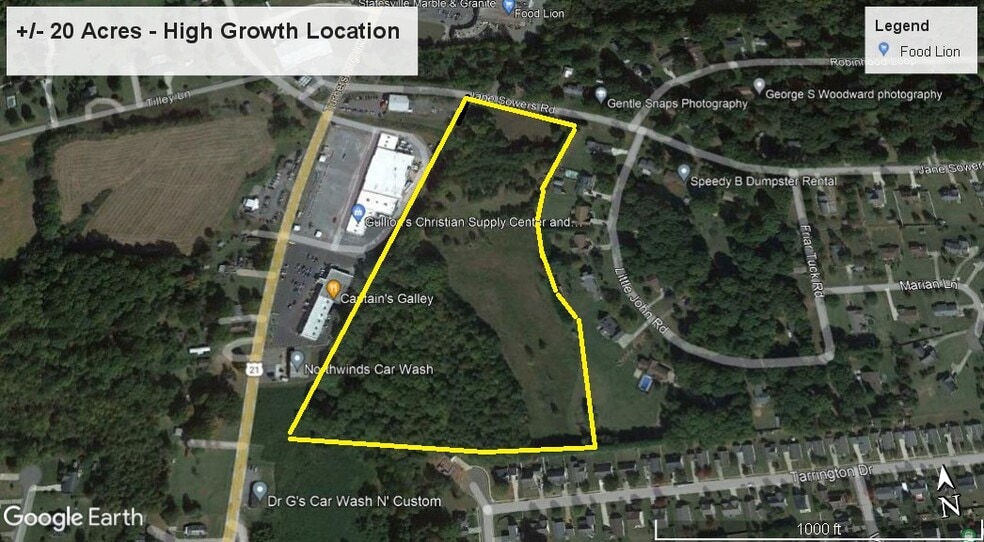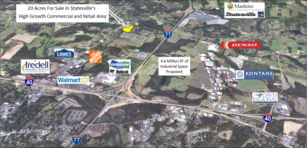 +/- 20 Acres in the middle of High Growth Commercial and Retail Area. Many projects under construction and/or planned. County R-20 Zoning bordering B-4 City Zoning, with city sewer and Iredell Water Corporation for water. Great location for high density project. Highly suitable to Apartment or Townhome development. This is Statesville's major retail and shopping area. Near Iredell Memorial Hospital with easy access to I-77 to the north and I-40 to the south. 375 foot frontage on Jane Sowers Road, just off US 21 N.