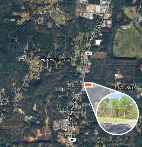 2.9 acres +/- of undeveloped land positioned on a highly visible corner at Jennings Road and Arch Street Pike (Highway 367). This corner parcel offers excellent exposure with strong traffic counts along Highway 367, making it ideal for a variety of commercial or service-oriented uses. Utilities—including water, electricity, and gas—are available at the site, streamlining development. Located just outside the city limits, the property benefits from fewer regulatory constraints, allowing for a wider range of potential uses. With its strategic location, corner frontage, and development flexibility, this site presents a compelling opportunity for investors, developers, or owner-users seeking high visibility and long-term value.