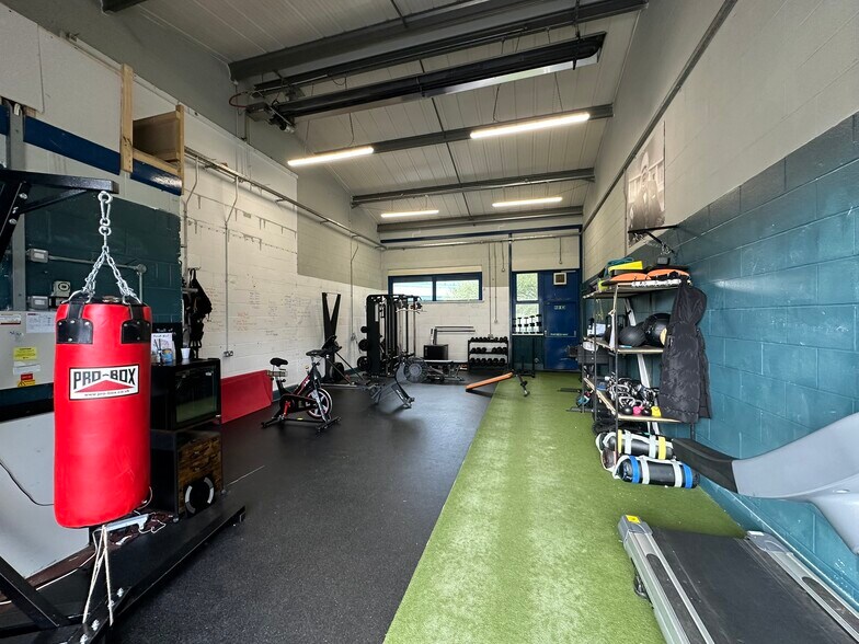 Unit 34 is a modern mid-terraced light industrial unit of steel portal frame and blockwork construction with insulated steel composite clad exterior. Internally the unit provides versatile open plan space, kitchenette and WC. It has an eaves height of approximately 4m and vehicle access is provided by a manual sectional up and over door.