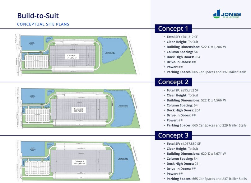 - Flexible design options from ±200,000 SF to 1,000,000 SF.