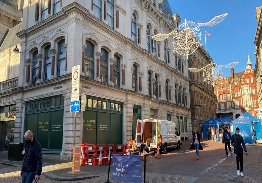 The property comprises mixed use commercial units spread across four floors. The property is a Grade II listed building and the main entrance is accessed up five steps from the Princes Street frontage. The property is located in Ipswich which is the administrative and county town of Suffolk with a resident population of 130,000 and a retail catchment population of approximately 300,000. The retail premises is located on the corner of the pedestrianised Princes Street and King Street, within the former Corn Exchange building. It is adjacent to the Town Hall and just south of Cornhill. The nearby occupiers are Barclays Bank, NatWest, Lloyds Bank, Ipswich Film theatre and local restaurants, bars and cafes.