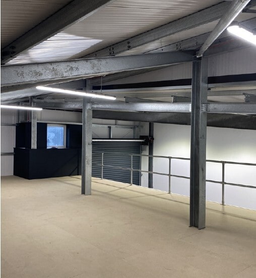 There is a storage mezzanine area with a clear height from the ground to the underside of the mezzanine of approximately 3.75 metres. The access door has an excellent height of 5.3 metres, The property benefits from three phase power supply, LED lighting and solar panels on the roof, 22kw car charger.