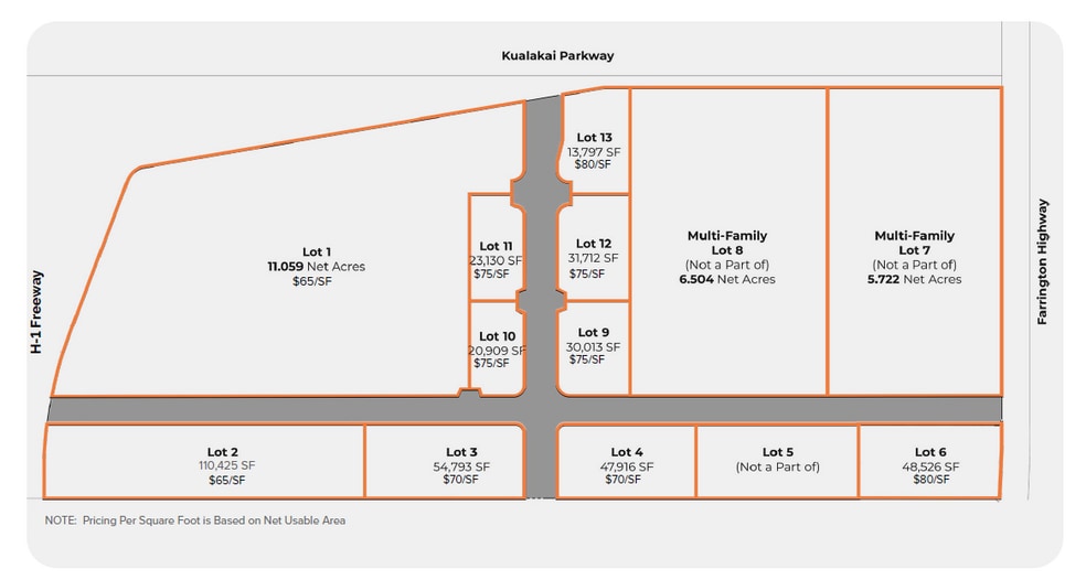 The land consists of ten (10) Fee Simple commercial parcels ranging in size from 0.48 to 11.06 acres located at the entry, or “Gateway,” to Ho’opili, Hawaii’s largest master-planned community under development by developer D.R. Horton.