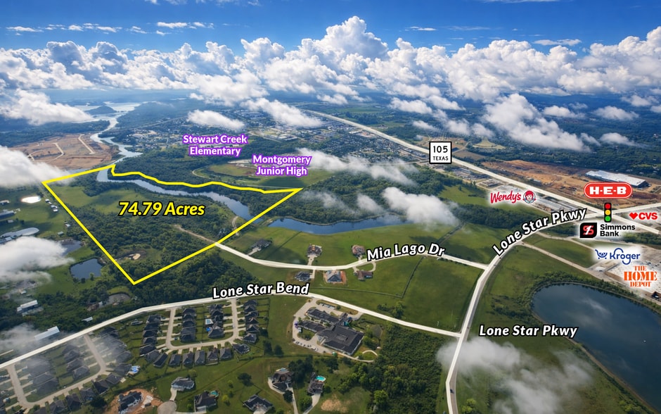 ±74.79-acre residential development opportunity located near Lake Conroe in Montgomery, Texas. The property is planned for approximately 52 large residential lots (¾ to 1 acre) and includes existing engineering plans. Strategically located near Lone Star Parkway and Highway 105, the site offers strong access to regional retail, schools, and surrounding residential growth. Nearby amenities include H-E-B, national retailers, and Montgomery ISD schools. Key features include: ±74.79 acres Planned for 52 paper lots Lot sizes: ¾ to 1 acre Engineering plans in place Water utilities available 7-acre canal connected to Lake Conroe Tax rate: ~2.0155% (2026) Surrounded by existing and planned residential developments Offered at $7,500,000. Owner will consider a finished lot sale.
