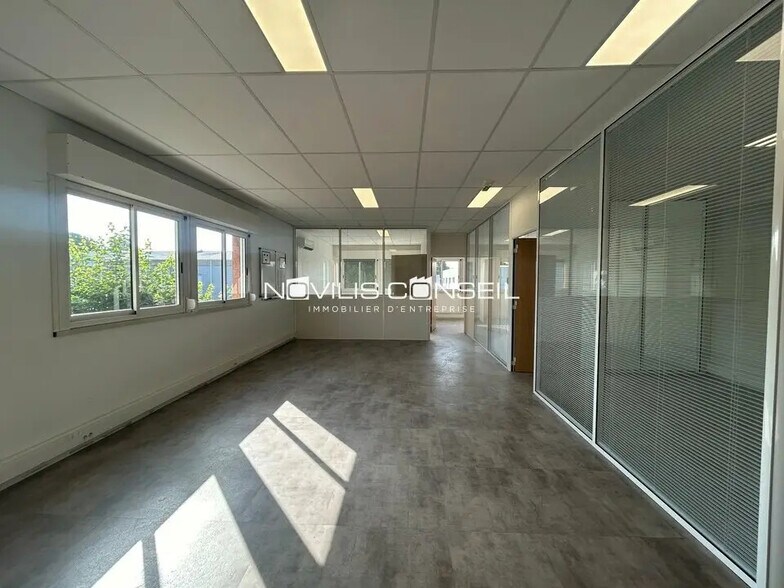 Le cabinet Novilis Conseil vous propose à location une surface de bureaux au R+1 avec une entrée privative située sur le secteur Nord de Toulouse, au sein de la Zone de Montredon. La surface est composée d'un espace d'accueil, d'un open space, de deux bureaux fermés ainsi qu'une salle de réunion. Un local technique, une kitchenette et deux sanitaires privatifs avec point d'eau viennent compléter ce bien. Places de parkings à mutualiser sur site. - Type de bail : Commercial - Durée : 3/6/9 ans - Préavis : 6 mois - Fiscalité : TVA - Indice : ILAT - Indexation : Annuelle, date prise effet - Dépôt de garantie : 3 mois HT/HC - Loyers et charges : Trimestriels et d'avance - Baie de brassage - Climatisation réversible - Cloisons amovibles - Faux-plafond 600x600 - Kitchenette - Lames pvc - Pavé LED 600x600 - Prises de courant - Réseau RJ 45 catégorie : - Sanitaires privatifs - Splits - Stores