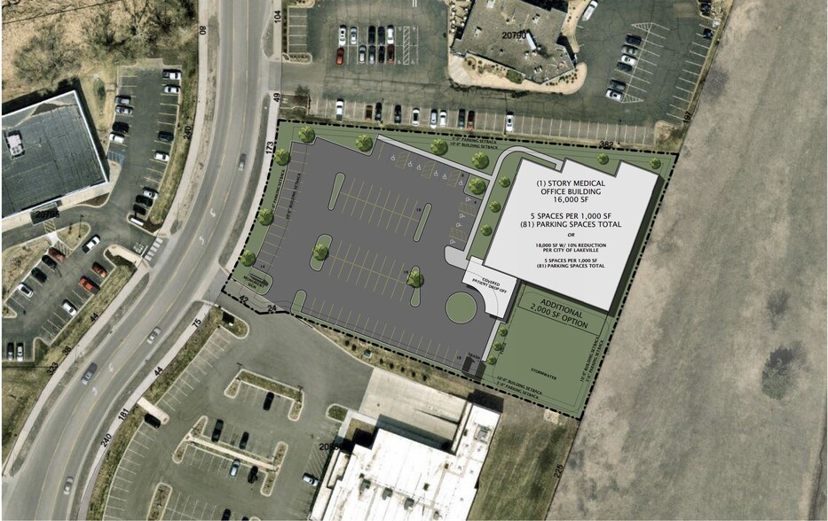 The City of Lakeville envisions a multi-tenant commercial building at this location—such as a sandwich shop, coffee shop, boutique retail, serviceoriented businesses, or a medical office—designed to serve the growing surrounding community. To enhance development potential, the City is willing to work with a prospective buyer to relocate the existing stormwater treatment area, currently positioned at the rear of the property near the highway, beneath a future parking lot. This flexibility would significantly increase the site’s buildable area and overall design efficiency. The property is zoned C-3, General Commercial and includes electrical service, sanitary sewer, water, and storm sewer utilities all stubbed to the property.