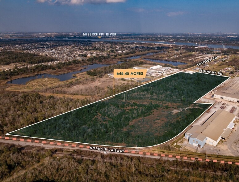 51 Foundry Road in Westwego, Louisiana is a unique infill opportunity. This expansive 45.45-acre site, strategically zoned M-2 Industrial, offers prime positioning within a thriving industrial corridor, ideal for heavy manufacturing, chemical processing, large-scale distribution, warehousing, or extensive transportation and logistics operations. Benefit from exceptional utility access, including adjacency to the robust Waggaman Entergy substation, ensuring reliable and high-capacity power. Further enhancing its strategic value is the close proximity to Trans-Louisiana gas pipelines, providing essential energy infrastructure for diverse industrial needs. Logistics are streamlined with major transportation routes nearby and direct access to the NOPB-UP Railway, offering critical rail connectivity for freight movement. The New Orleans Public Belt Railroad (NOPB) serves as a vital hub, connecting with six Class I railroads across North America. Additionally, the property is located less than a mile from the Mississippi River, providing potential for efficient waterway transport and access to global markets. This exceptional combination of rail, road, pipeline, and river access makes 51 Foundry Road an ideal location for any enterprise seeking a highly connected, utility-rich, and strategically positioned site in the Westwego industrial landscape