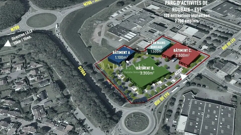 Advenis Conseil Lille vous présente le parc d'activités HORIZON, une opération neuve livrée en septembre 2026 au coeur du Versant Nord-Est, à Toufflers. Ce parc nouvelle génération totalise 6 880 m² répartis sur trois bâtiments, et propose des cellules divisibles dès 303 m² pour accueillir artisans, PME, sociétés de services ou activités mixtes. Les bâtiments, pensés pour le confort et la performance, offrent : Des hauteurs adaptées au stockage et à la logistique légère, Des bureaux en façade livrés aménagés, Des places de parking privatives, Une architecture contemporaine et durable (photovoltaïque, espaces verts, gestion des eaux optimisée). Le parc HORIZON bénéficie d'une accessibilité rapide vers les grands axes métropolitains et d'un environnement tertiaire et commercial attractif. Une opportunité rare pour les entreprises souhaitant s'implanter dans un parc neuf et valorisant sur le secteur de Toufflers / Lys-lez-Lannoy. - Type de bail : Commercial - Durée : 3/6/9 ans - Fiscalité : TVA - Indice : ILAT - Indexation : Annuelle - Dépôt de garantie : 3 mois - Loyers et charges : Trimestriels et d'avance - 4 bâtiments indépendants - 97 places de stationnements - Portes sectionnelles - Portes à quai - Espaces verts - Alarme