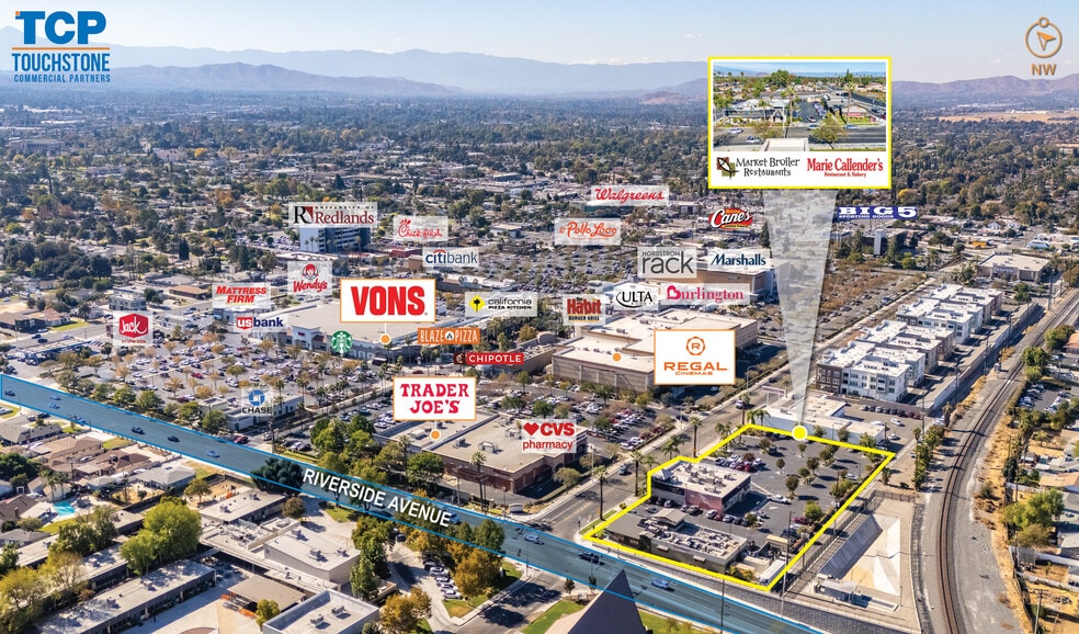 The property is located directly across from Riverside Plaza, a 475,000-square-foot regional shopping center with more than 60 retailers and approximately 8.5 million annual visits. Major anchors include Vons, Regal Cinemas, and Trader Joe’s