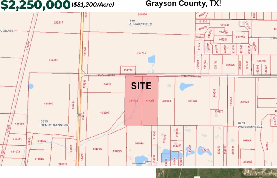 McConnell Road - 27.7 Acres Land Grayson County 27.72 Acres of Commercial Land Offered at $3,077,325 CAD in Gunter, TX 75058