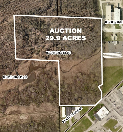 Absolute auction, all sells to the highest bidders. Location: Middle Rd., Ashtabula, OH 44004 29.915 Acres Of Vacant Land, Wooded, Industrial Area, Zoned M-2, Deer, Ashtabula Co., Ashtabula Twp.