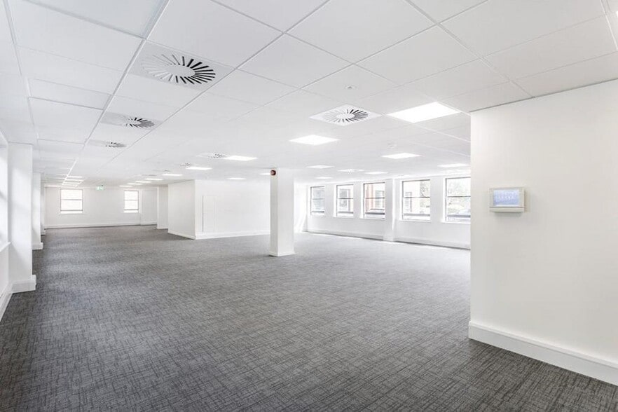 The 2nd floor (13 spaces) is available from August 2025, featuring air conditioning, LED lighting, WCs & tea points. It can be split from approx. 1,900 sq ft or combined with the refurbished 1st floor (3,530 sq ft) for a total of 7,421 sq ft with 28 spaces. The building provides a professional and well-connected working environment.