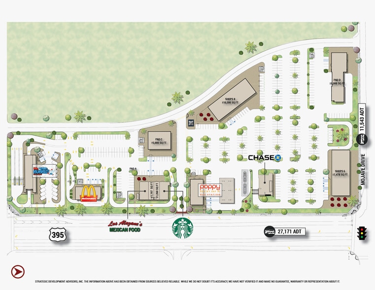 • 44,700 Square Feet of GLA on 13.2 Acres • Bulls-eye intersection of Highway 395 and Mojave Drive • Between 2000 and 2014, the estimated population increased by 677% in a 3-mile radius • Highway 395 is the primary connector from the I-15 to the multi-million square-foot Southern California Logistics Center • Poppy Market convenience store and gas station, Mr. Bubbles Car Wash, McDonald's Now Open
