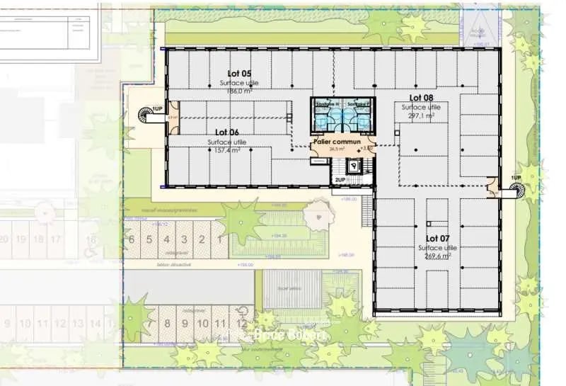 Cet espace situé au premier étage du bâtiment offre un plateau livré non cloisonné, idéal pour un aménagement sur mesure. Il bénéficie d’une excellente luminosité naturelle et d’un confort thermique assuré par un système de chauffage et rafraîchissement d’air par pompe à chaleur. Les sols sont revêtus de carrelage et moquette pour une finition élégante. L’accès est facilité par un ascenseur et l’immeuble dispose d’un local à vélos pour les déplacements doux.