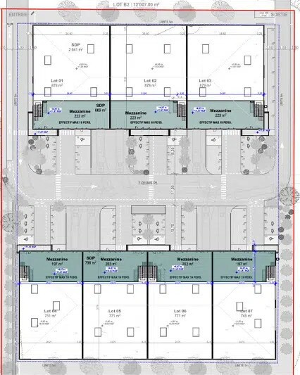 Programme neuf de locaux d'activités - Zone Aéroport Montpellier Superficie du terrain : 12 000 m² environ Surface de plancher à bâtir : 7 162 m² divisible a partir de 946m2 Hauteur libre sous poutre : 8 m Charge au sol : 3t/m² Accès de plain-pied : 7 (4m x 3m) Accès à quai : 7 Parking VL : 75 - Chauffage Entrepôt - Éclairage Entrepôt - Prestations - Bureaux /Locaux sociaux - Chauffage pour maintien hors gel - LED + skydome en toiture - Alimentation tarif jaune - Plinthes électriques PVC - Climatisation réversible - Plateaux non cloisonnés - Faux-plafonds - Hauteur sous-plafond : 2,7 m