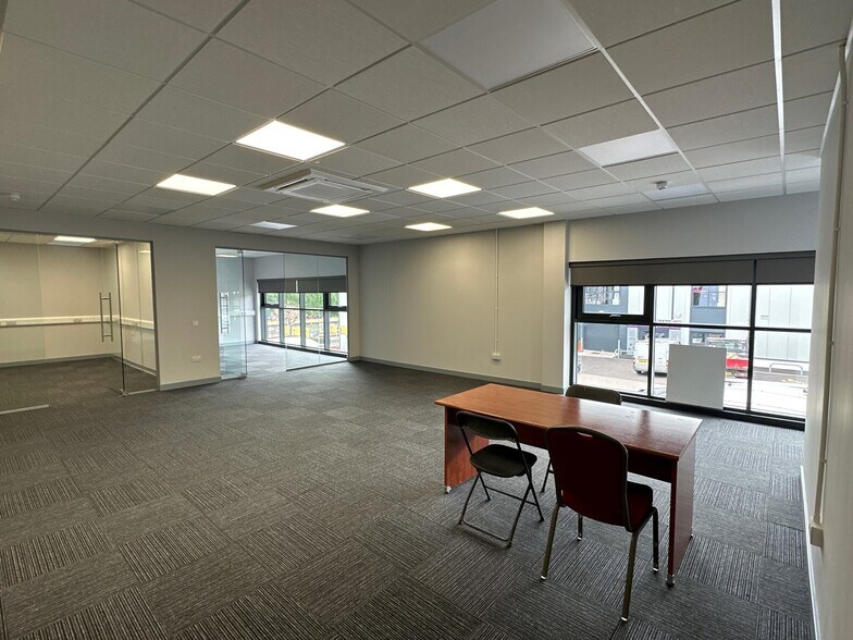 Unit 1B is on the first floor accessed via both a staircase and a newly installed Cibes 4-person passenger lift. The unit provides a large reception/open plan area plus 2 glazed screen offices off the main space. In addition, there are 2 spacious toilets and a staff tea prep area. The unit has been fully fitted with new floor coverings. The main area benefits from a suspended ceiling grid which incorporates both modern LED box lighting and recessed air conditioning cassettes. The space is heated throughout via an economical hybrid air source heat pump system.