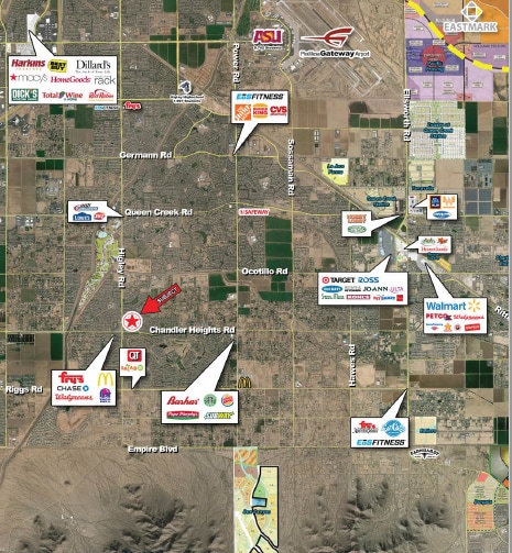 • Fantastic infill opportunity within the Seville and Marbella master-planned communities in Gilbert. • Median HH Incomes are over $112,000 within a 3 mile radius. • Site is located just south of newly developed Gilbert Regional Park • Strong daytime population with over 50,000 persons within a 3 mile radius. Located near Basha High School (2,400 students) and Dr Camille Casteal High School (2,900 students).