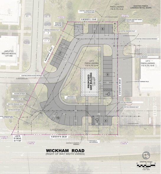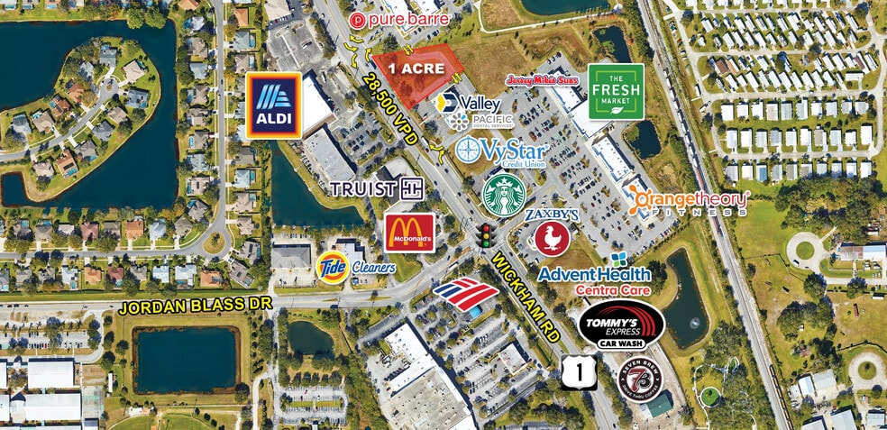1+ acre outparcel available for sale, ground lease, or build-to-suit. Building up to 2,500 SF. Ideal for a quick casual restaurant like Jason’s Deli, Panera Bread, etc. Outparcel to the Fresh Market grocer anchored Pineda Landings shopping center. 28,500 VPD on Wickham Road with excellent visibility and access. Surrounded by national retailers (Aldi, McDonald’s, Starbucks, Zaxby’s, Vystar, Pacific Dental, The Fresh Market, etc.). Strong demographics and daytime population driving retail & service demand. Two conceptual site plans provided - flexible pad-ready development.